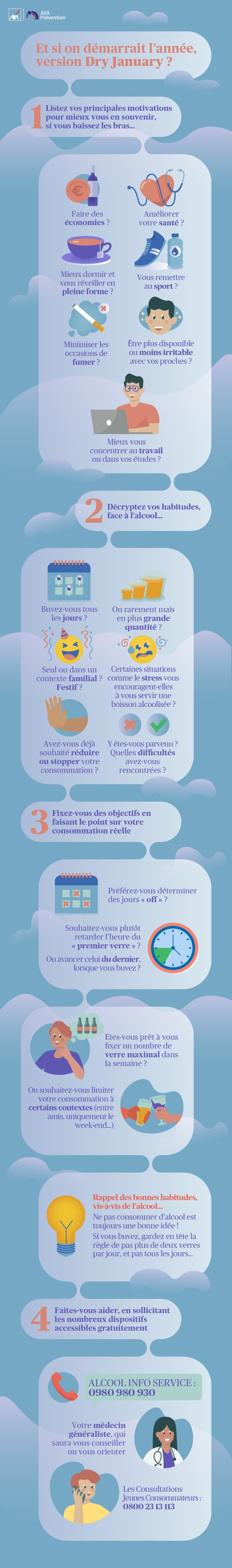 Il est toujours bénéfique de prendre du recul sur son rapport à l’alcool. Et au mois de janvier, plusieurs campagnes ou initiatives comme le Dry January (janvier sec, ou plutôt sans alcool…) vous encouragent à réduire voir à suspendre votre consommation de boissons alcoolisées. Par où commencer ? Quelles sont les bonnes questions à se poser…tout au long de l’année