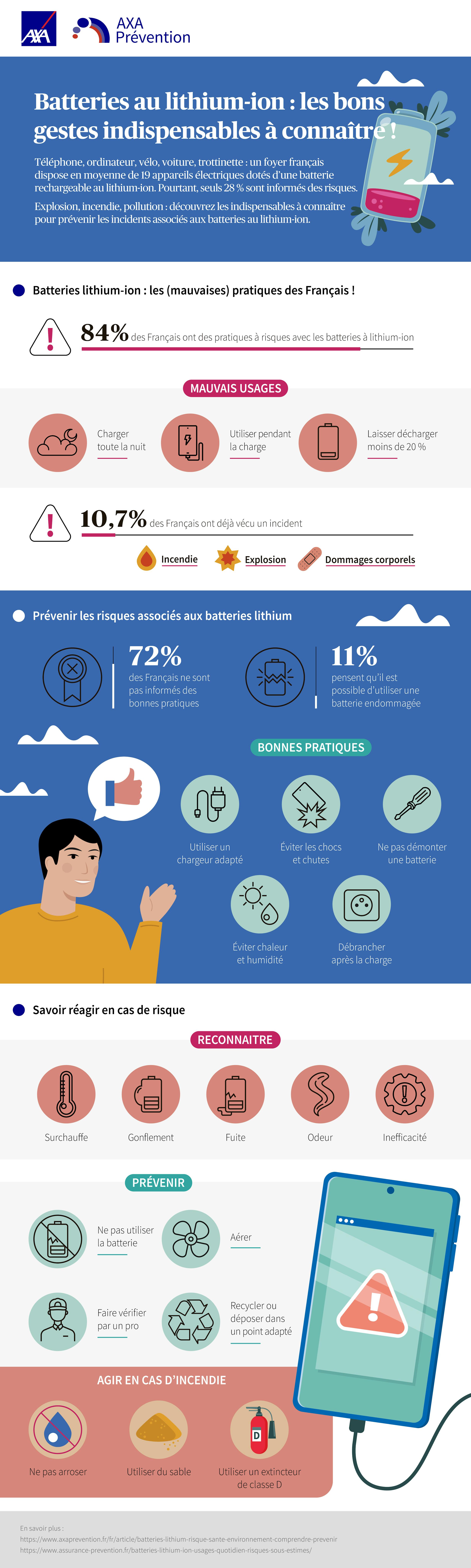 Explosion, risque électrique, incendie, pollution : les batteries lithium-ion comportent des risques pour toute la famille en cas de mésusage ou de défaut de fabrication. Pourtant seuls 28 % des Français sont informés de ces risques !