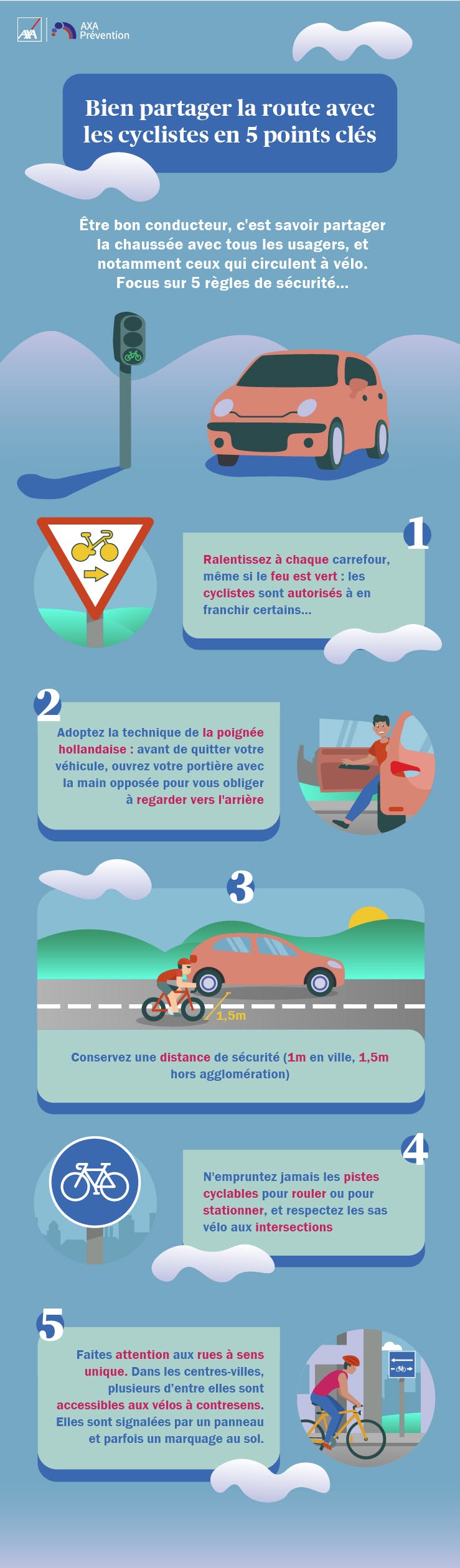 Une bonne cohabitation est pourtant essentielle afin d’éviter les conflits sur la route. Pour se déplacer sereinement, 5 points de vigilance s’imposent. Focus en image sur les gestes et bons réflexes à adopter...
